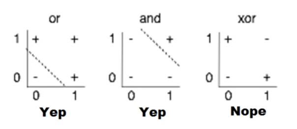 XOR 연산을 구현해낼 수 없다는 결론을 내었다.