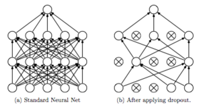 Dropout은 랜덤한 일부 노드를 끊어 없애는 것을 말한다.