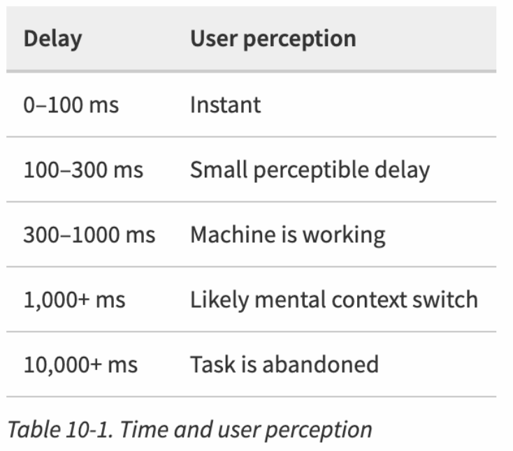 아래 표는 지연 시간에 따른 사용자 체감을 나타낸 표이다.