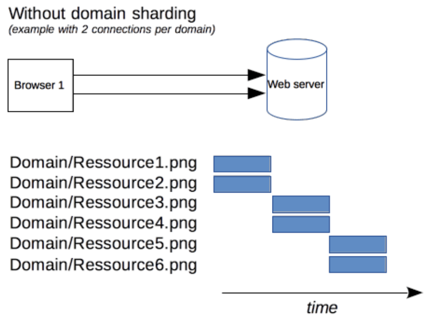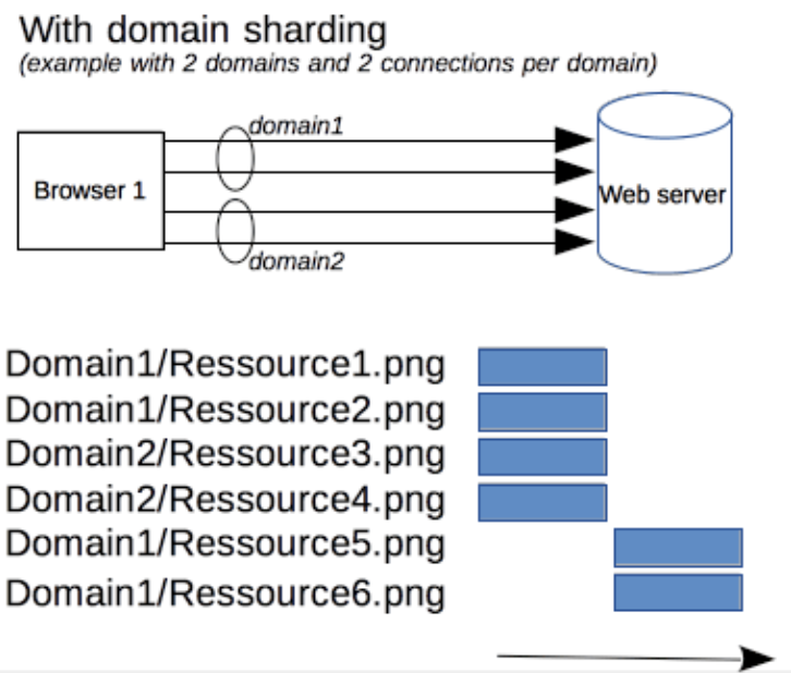 domain sharding은 여러 도메인 연결 제한을 피하기 위해 순차적인 직렬 연결을