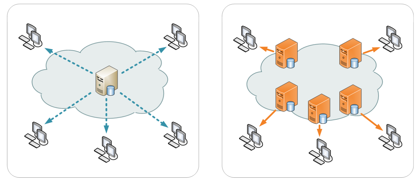 즉 대륙별, 국가별로 서버를 나누어 컨텐츠를 나눠가진 후 데이터 요청 시