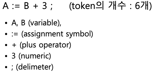- 토큰: 키워드, 연산자, 식별자, 상수