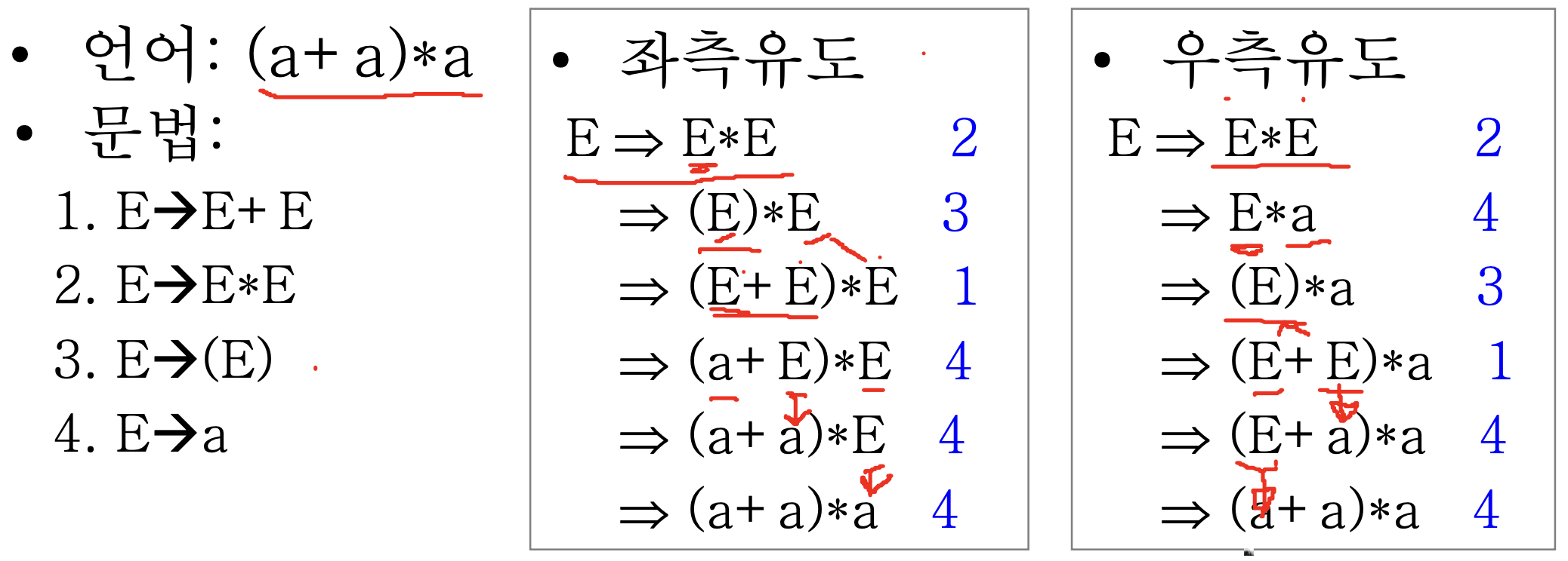 문법에서 문장(언어)을 생성하는 과정을 유도라고 한다.