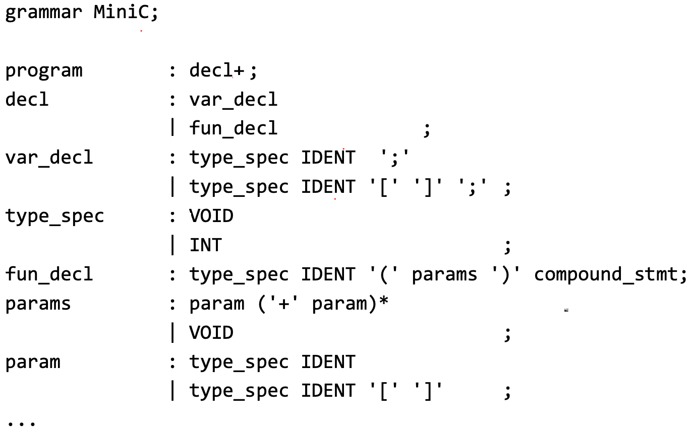 아래 사진은 ANTLR 문법으로 작성되었으며, 일종의 EBNF라 할 수 있다.