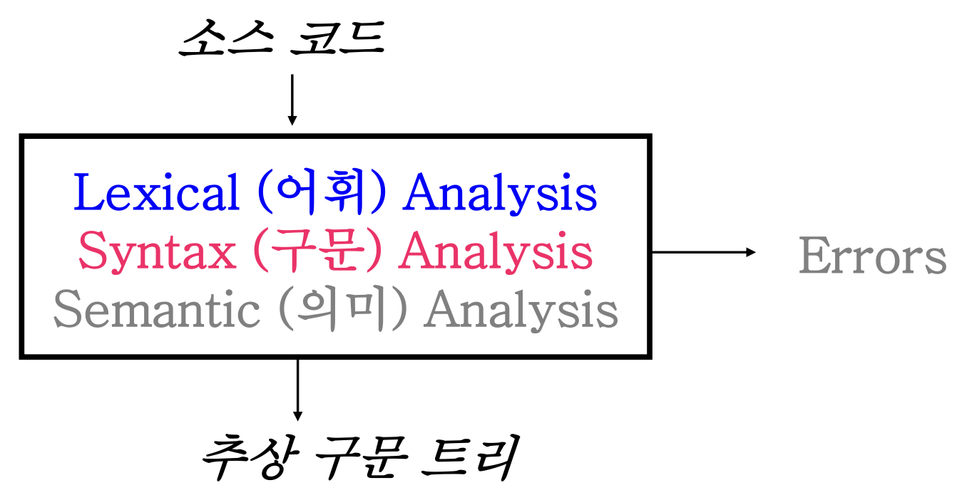 컴파일러는 소스코드를 어휘분석기를 거치고, 구문분석기를 거친 후, 의미분석기
