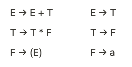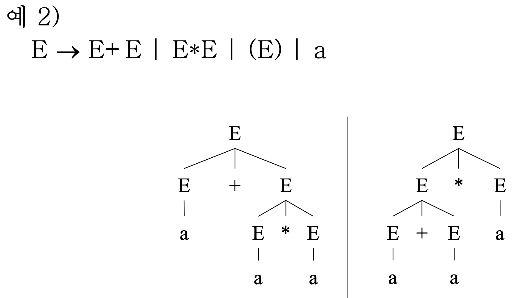 방금 예시로 들었던 E -> E+E | E*E | (E) | a 문법을 모호하지 않게 바꾸면 아래와 같다.