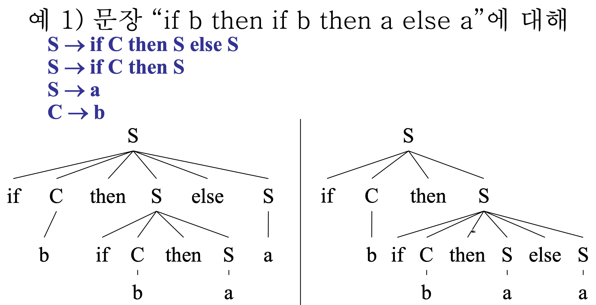 모호성이란 문법 G에 의해 생성되는 어떤 문장이 두 개 이상의