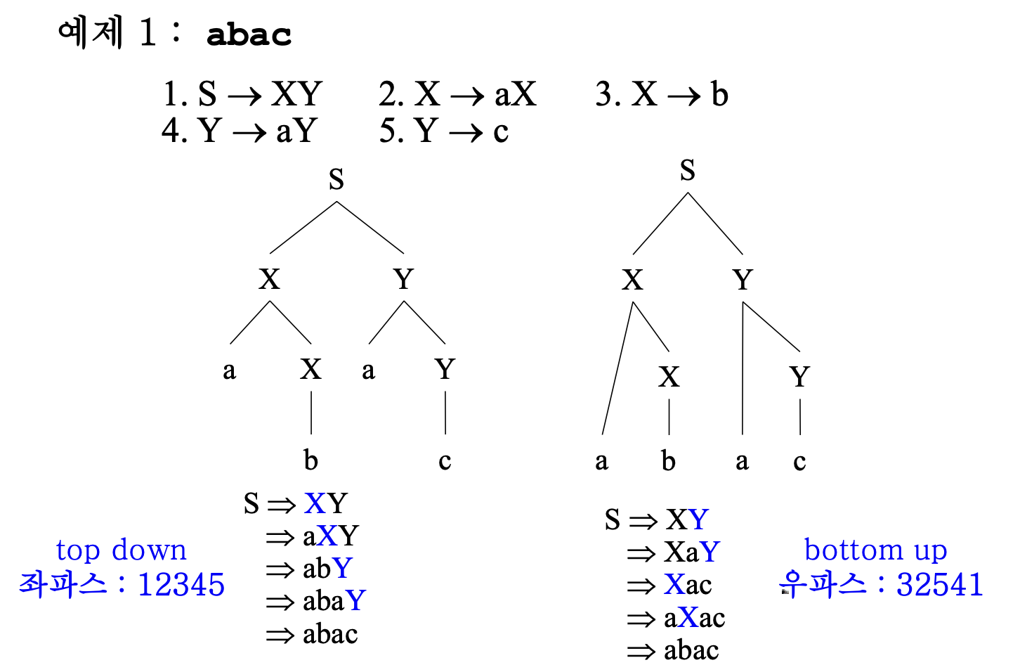 이때, 우측 유도 중 적용된 생성 규칙 리스트의 역순을 우파스라고 한다.