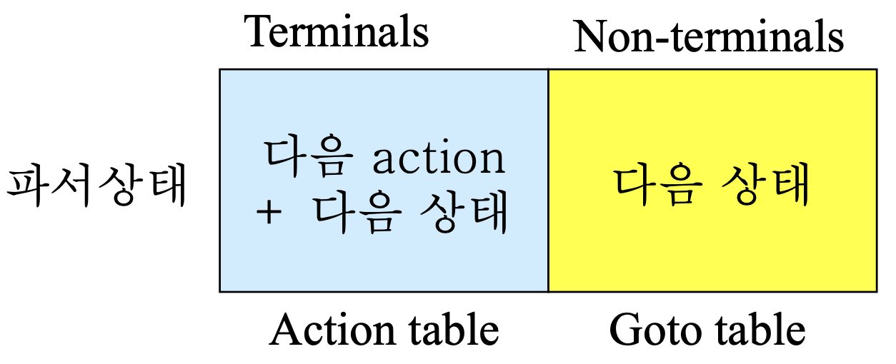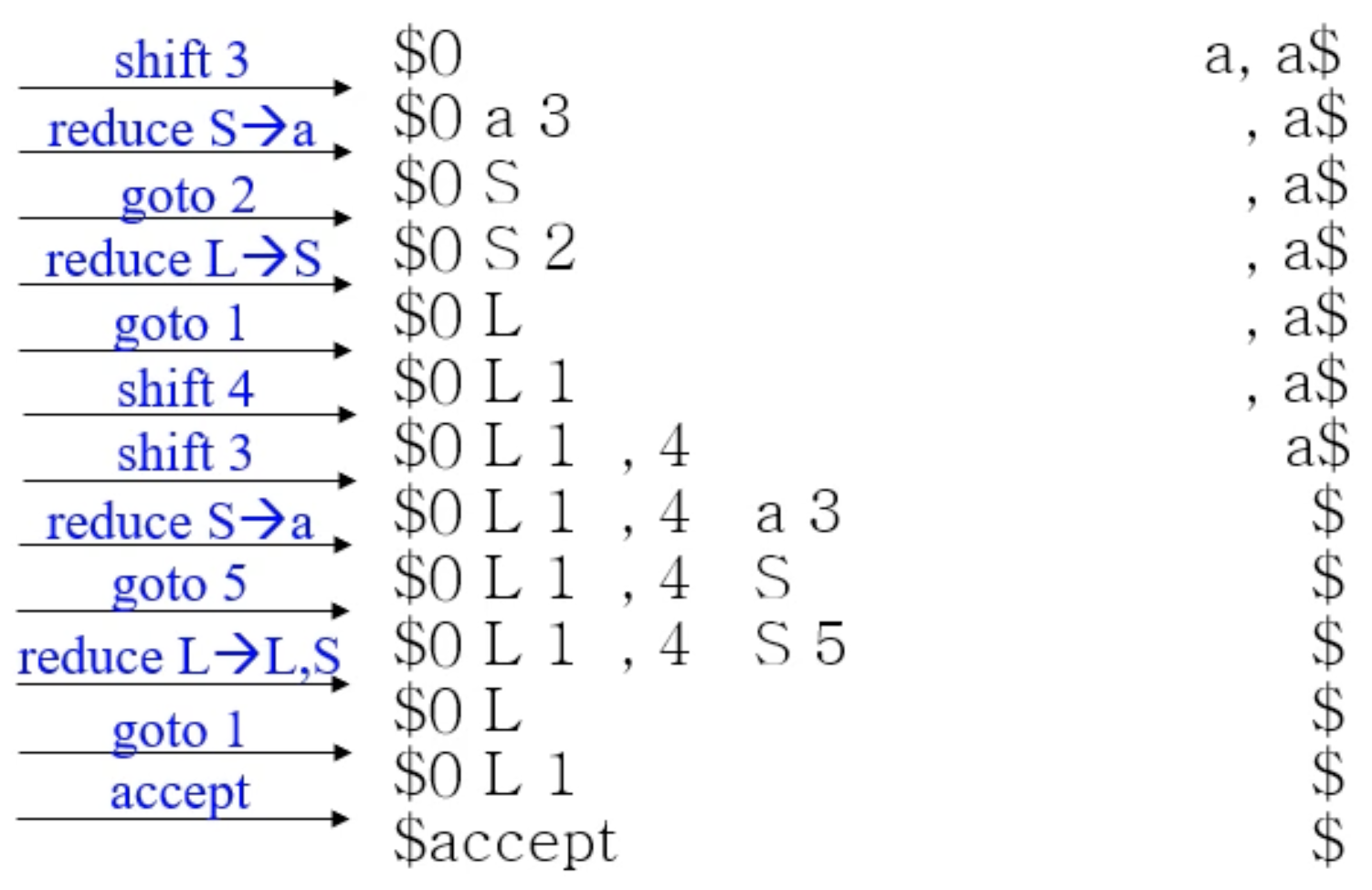 이후의 stack의 모습을 보면 스택의 top에 상태 번호가 없고 non-terminal이 존재한다.