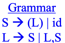 (단, FOLLOW(S) = {$, ), ','}, FOLLOW(L) = {), ','})