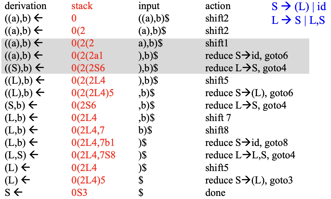 즉, 파싱 테이블에서 X의 팔로우에 속하는 터미널에 대해서만 reduce를 진행한다는 의미이다.