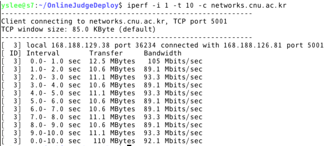 iperf는 서버 - 클라이언트 간의 네트워크 대역폭 및 속도를 측정하는 도구이다.