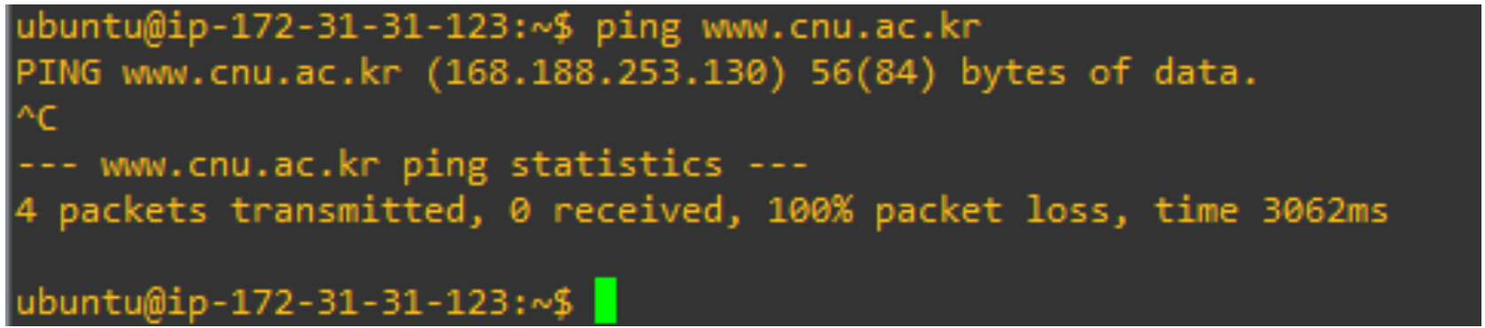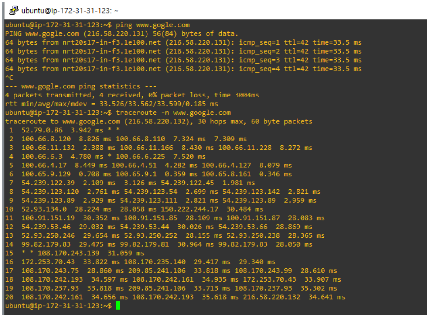 아래는 ping을 통해 측정한 AWS에서 Google까지의 지연시간이다.