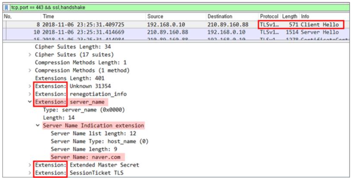 이 SNI를 통해 어느 도메인의 웹 사이트를 접속했는지 볼 수 있으므로 이를 차단할 수 있다.
