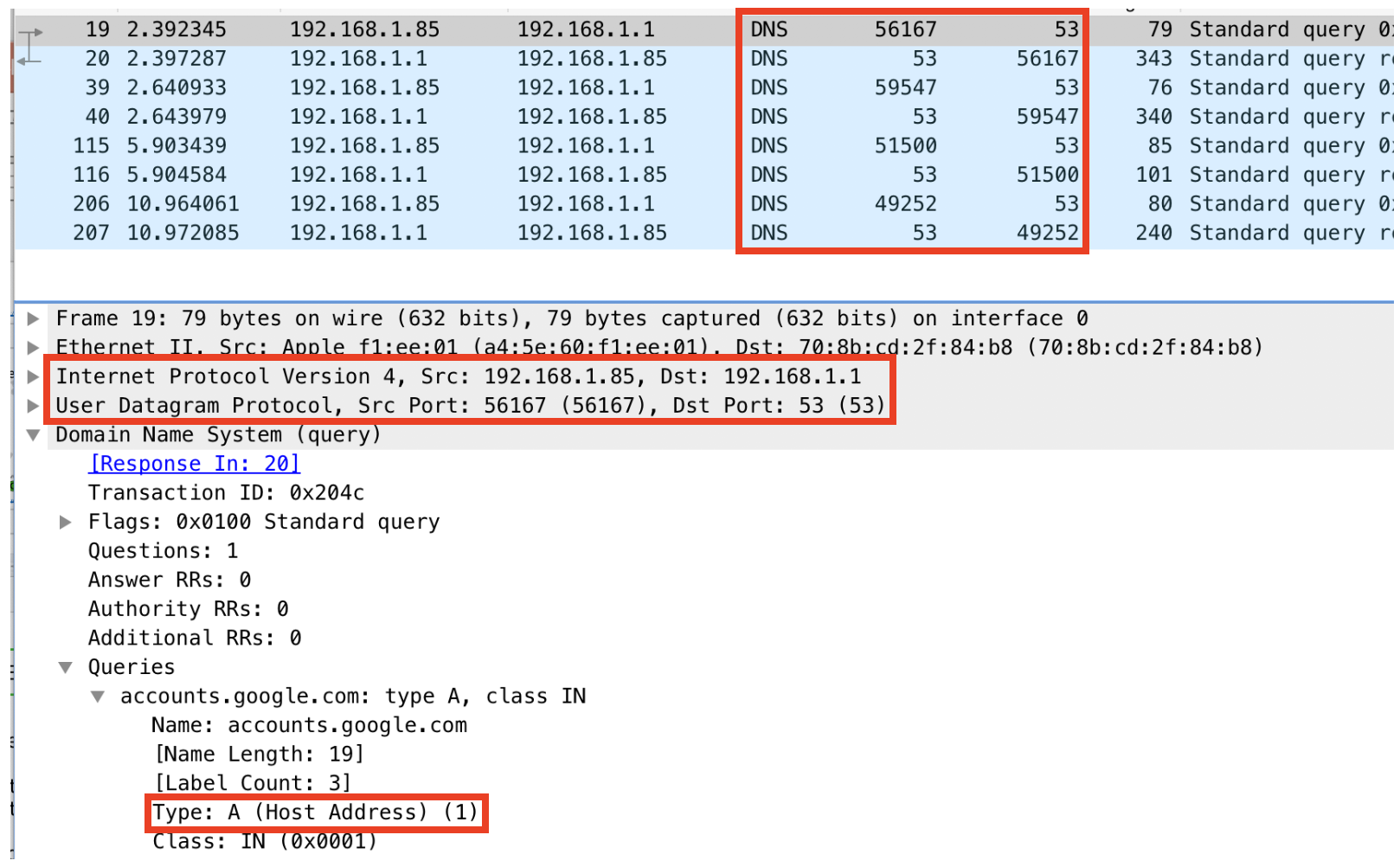이러한 DNS 패킷은 보통 53포트를 사용한다.