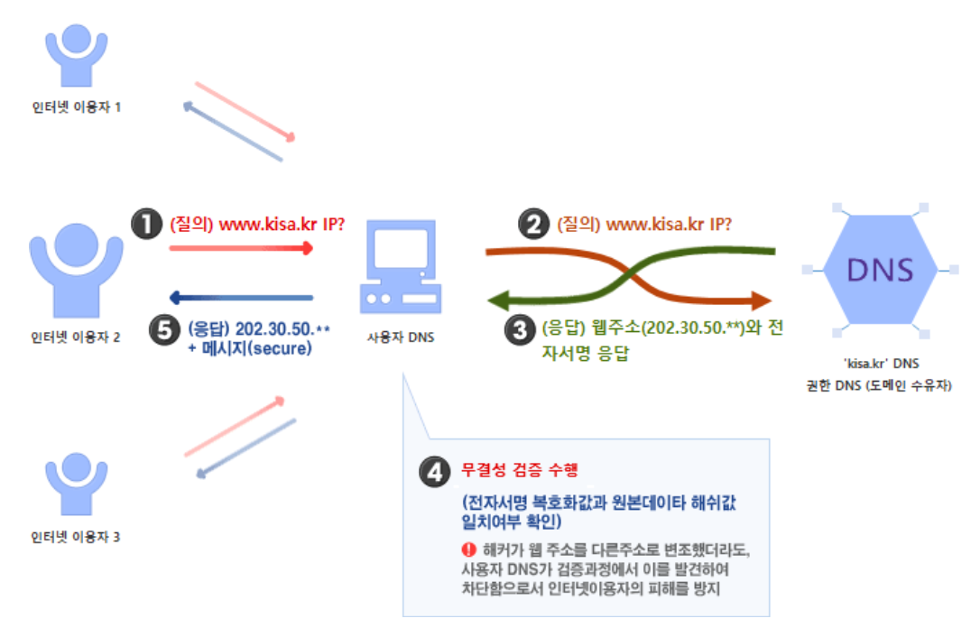 DNS Security Extension으로 데이터를 위조-변조 공격 방지 기술이다.