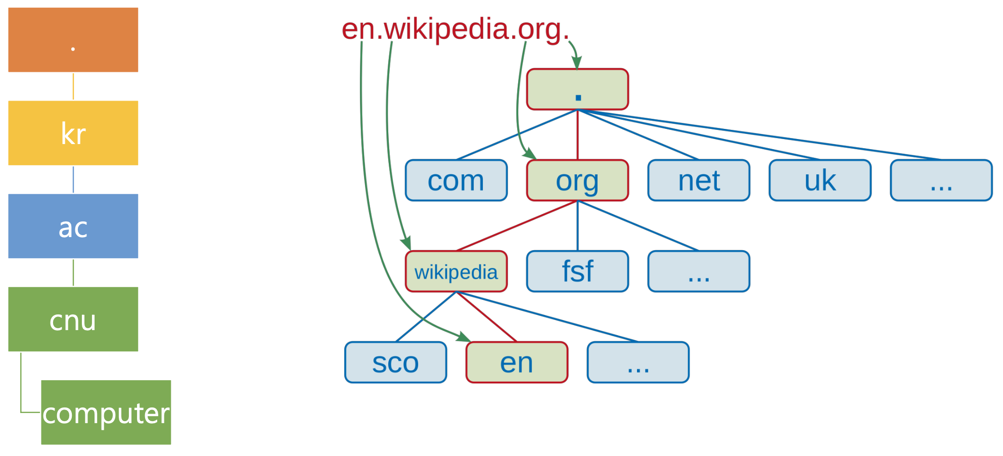 즉, DNS는 계층 구조를 지닌 분산 데이터베이스 구조를 가지며, 각 계층은 점('.')으로 구분된다.