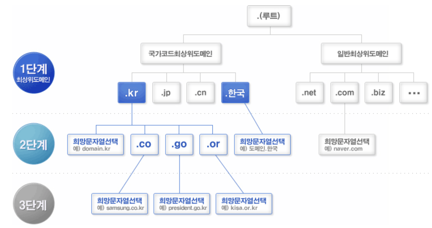 루트 바로 아래 도메인으로 각 국가 정보를 2자리 영문 약자로 표기한다.