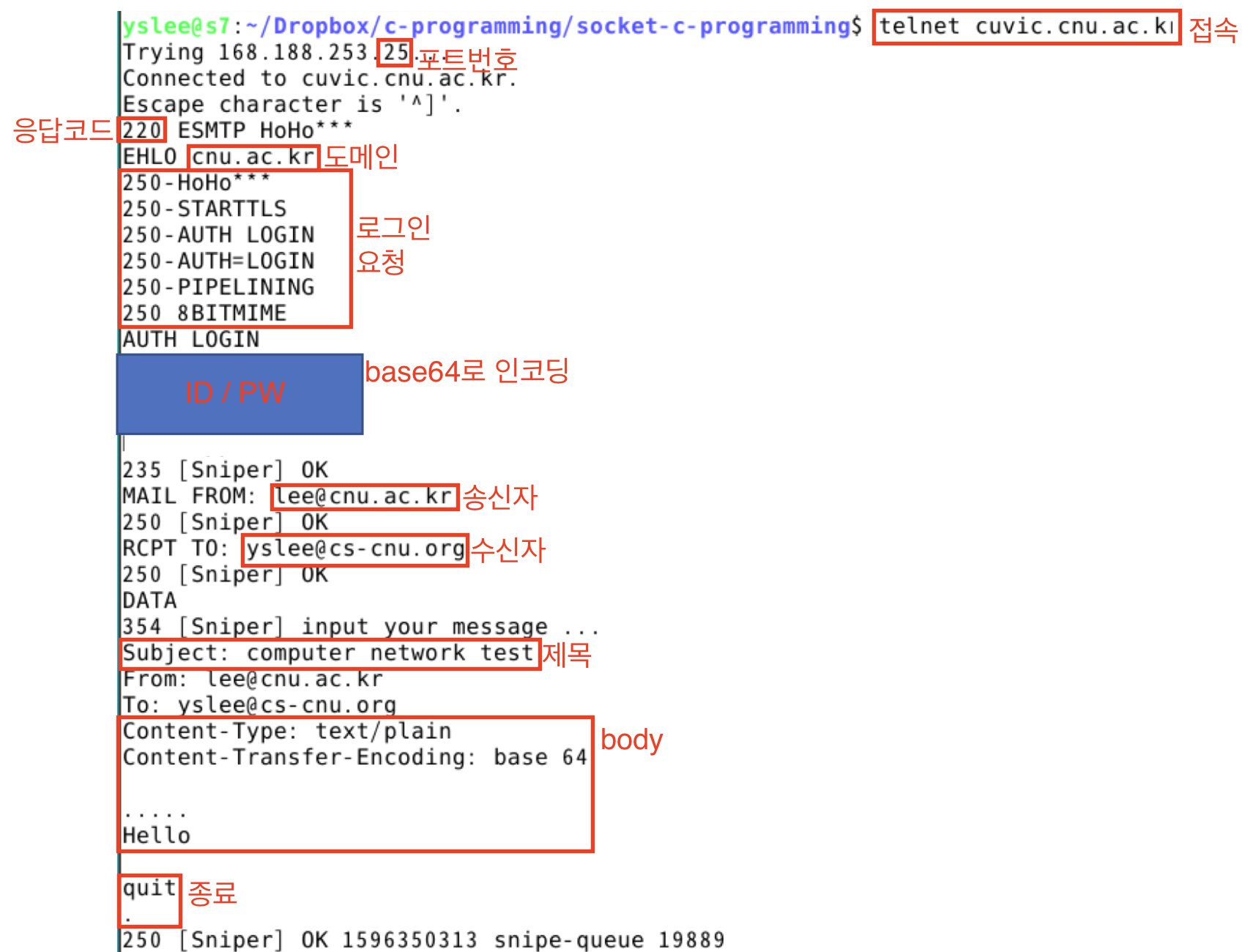 아래는 cuvic의 서버에 접속하여 메일을 전송한 모습을 보여준다.