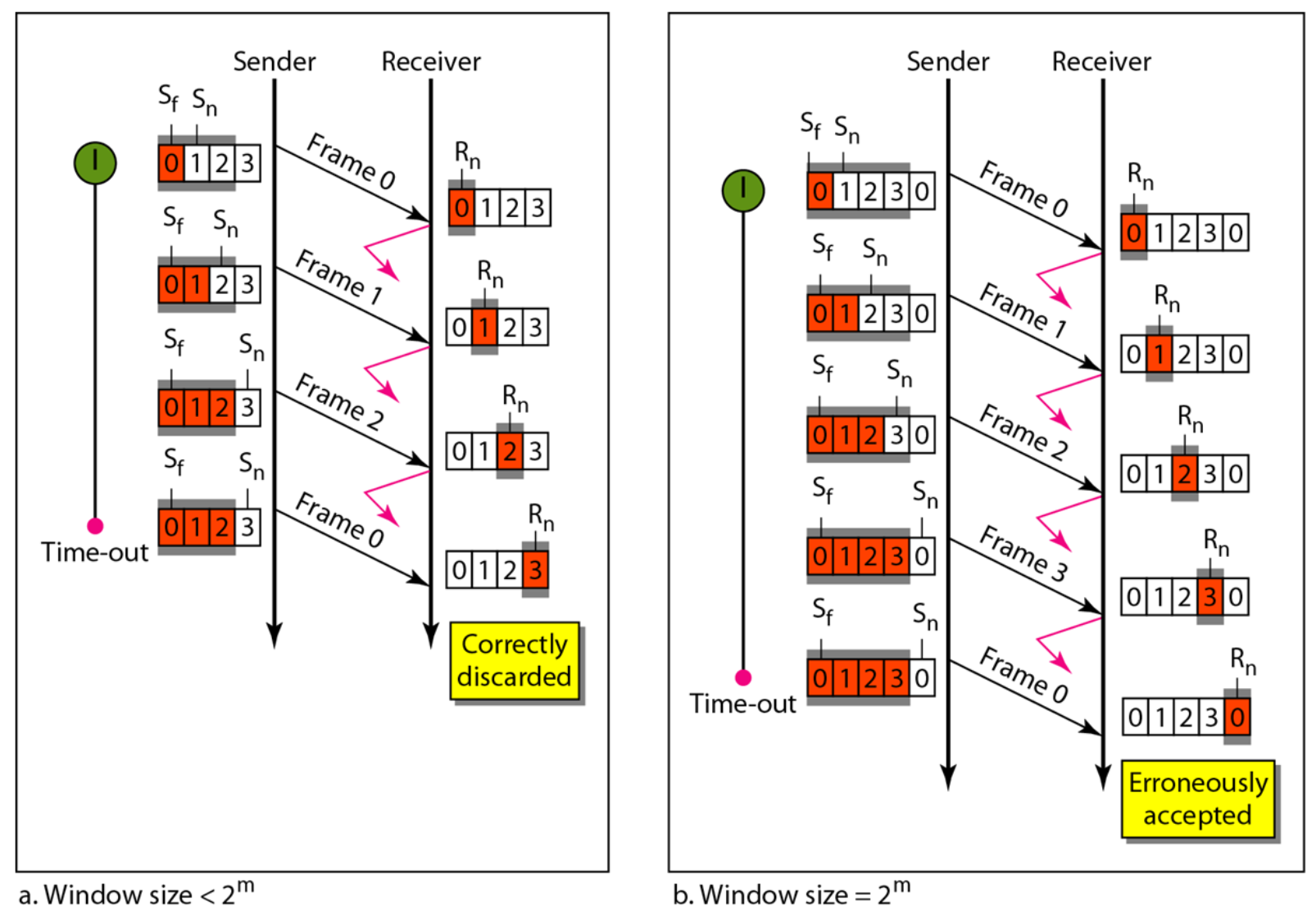 이때 수신자도 마찬가지로 여러 개의 패킷을 수신하고 각 패킷 별로 ACK를 전송해야 하므로수신자의 윈도우 크기 또한 2 이상이어야 한다.