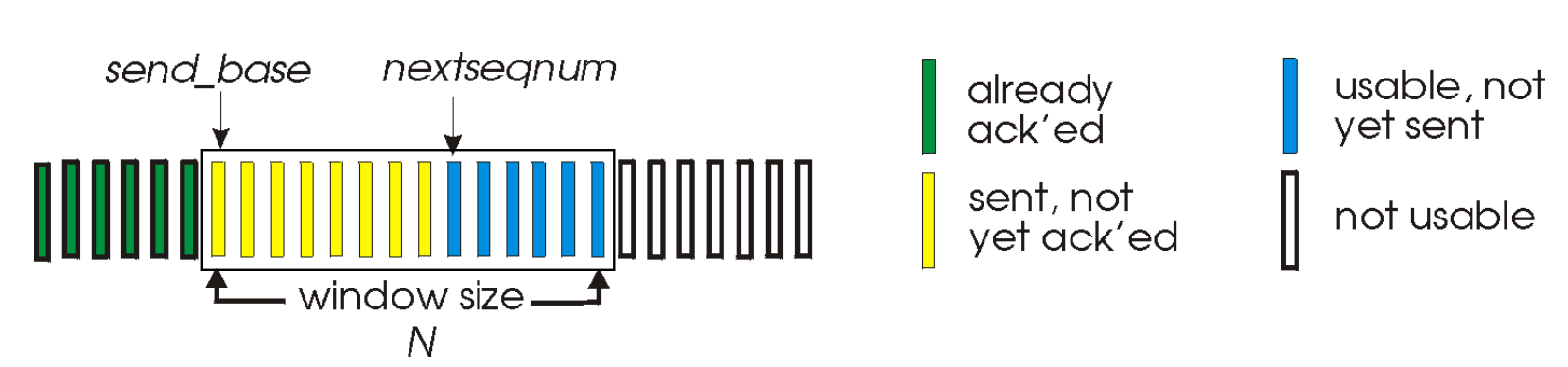 GBN에서 송신자는 ACK를 수신받지 않은 N개의 패킷을 전송할 수 있다.
