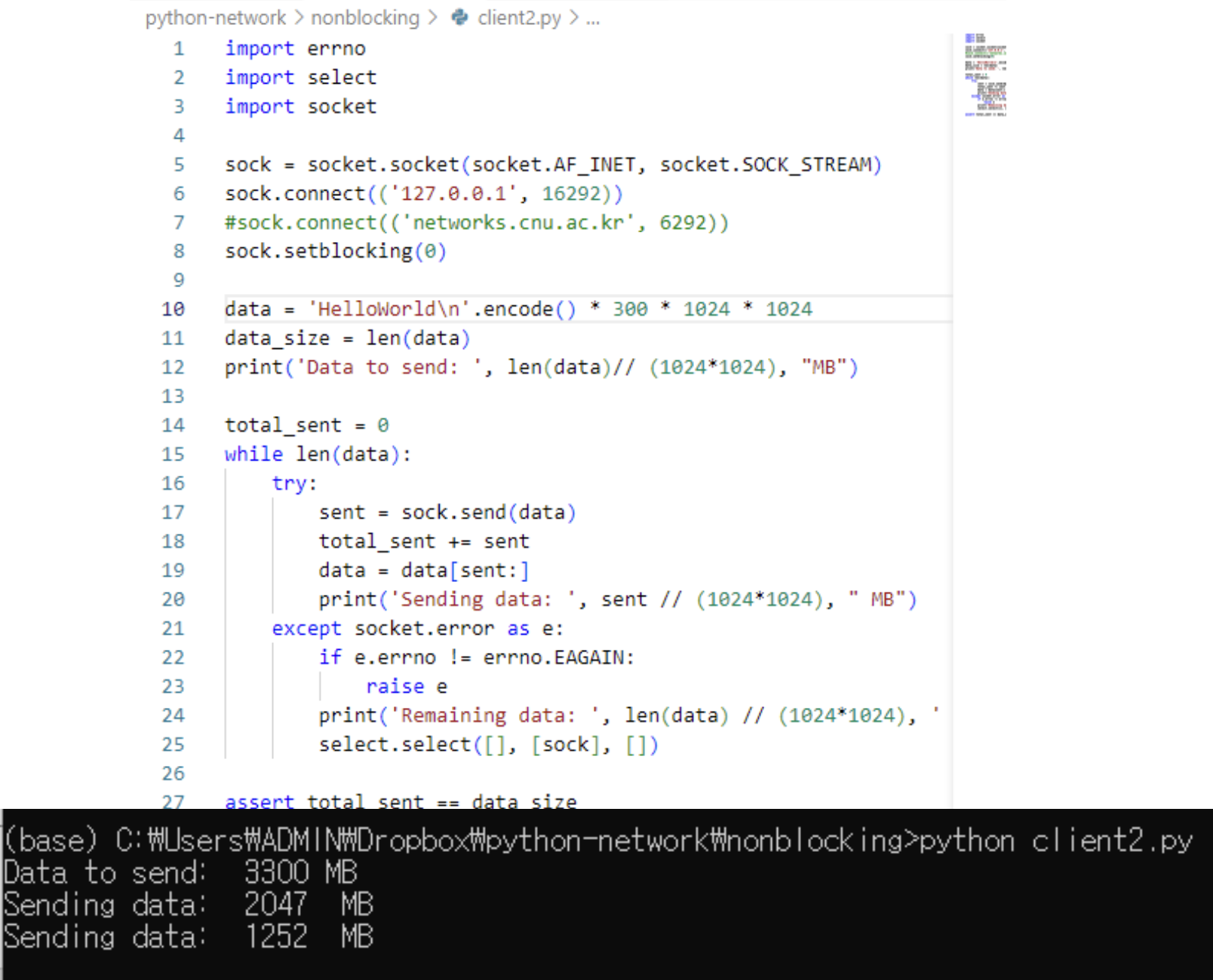 socket.send 함수로 데이터의 전체를 전송하지 않는다는 가정 하에