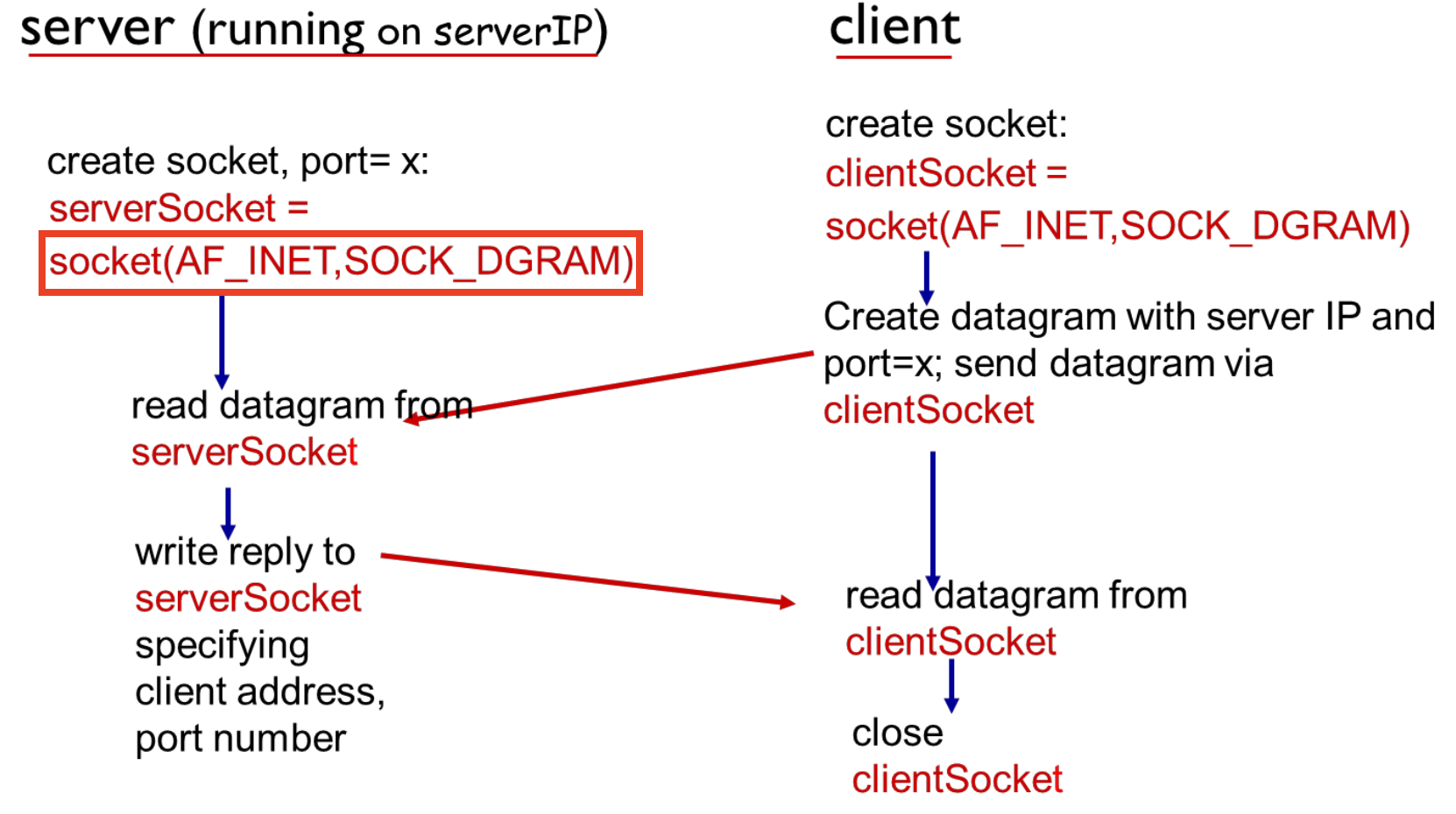 sendto()로 메세지를 전송하는데, 호스트네임와 포트번호 명시해야 한다.