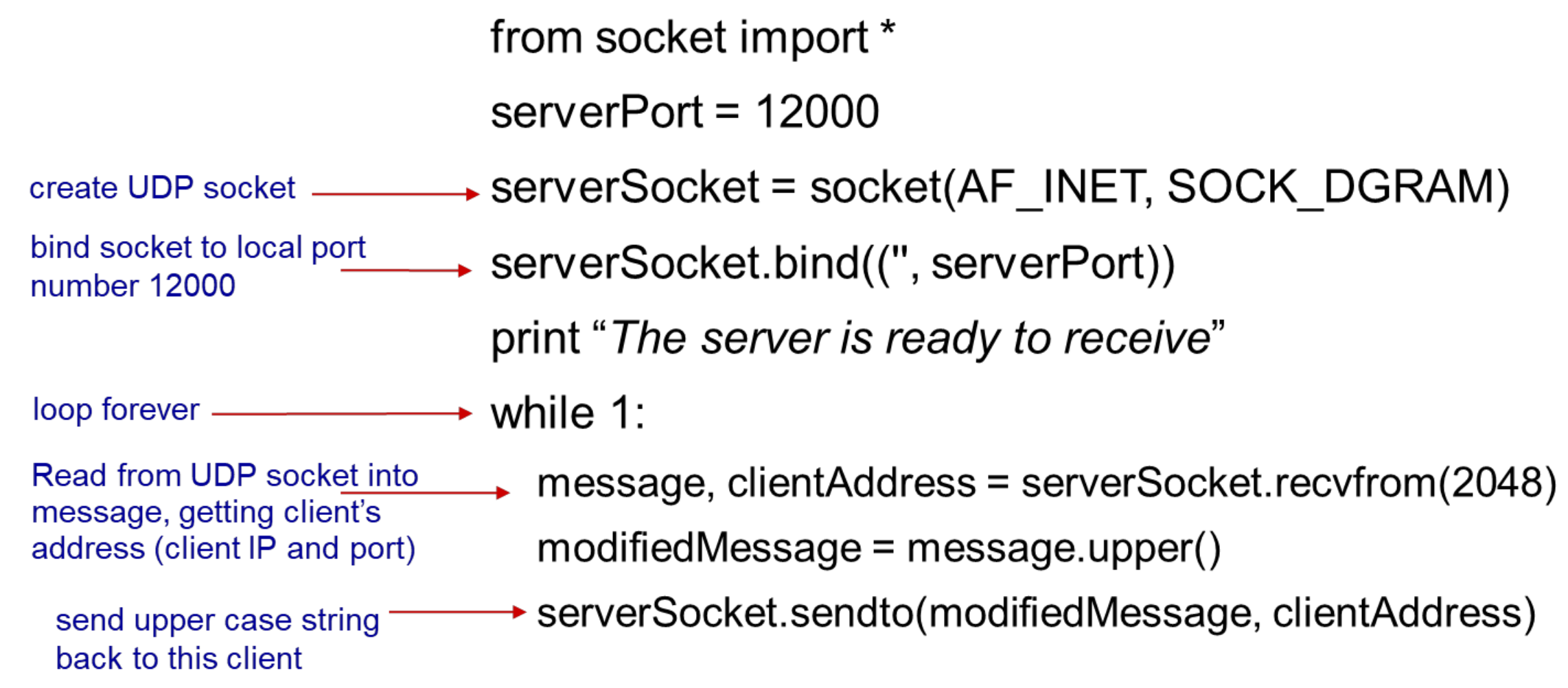 파이썬으로 UDP 통신 시 서버의 코드는 위와 같다.
