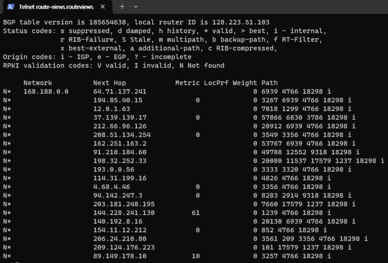 - NEXT-HOP: 다음 AS로 향하는 라우터의 주소