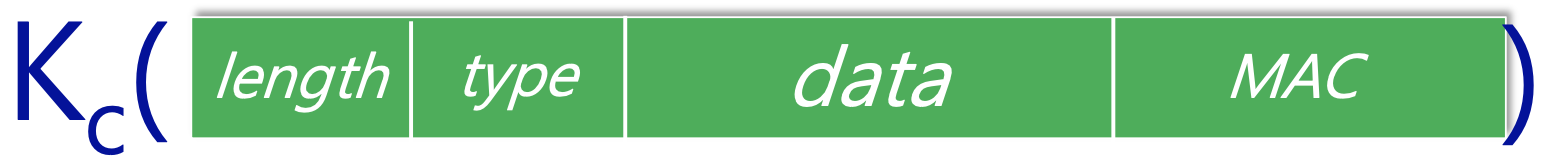 각 레코드는 Mc를 이용하여 만들어진 MAC를 포함하며, 대칭 키 Kc를 통해 암호화되어 TCP로 전달된다.
