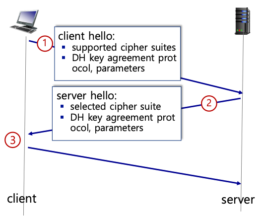 위 사진은 TLS handshake의 과정을 도식화한 것이다.