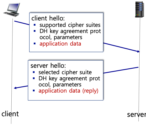 초기의 hello msg에는 암호화된 응용 데이터를 포함하고 있다.