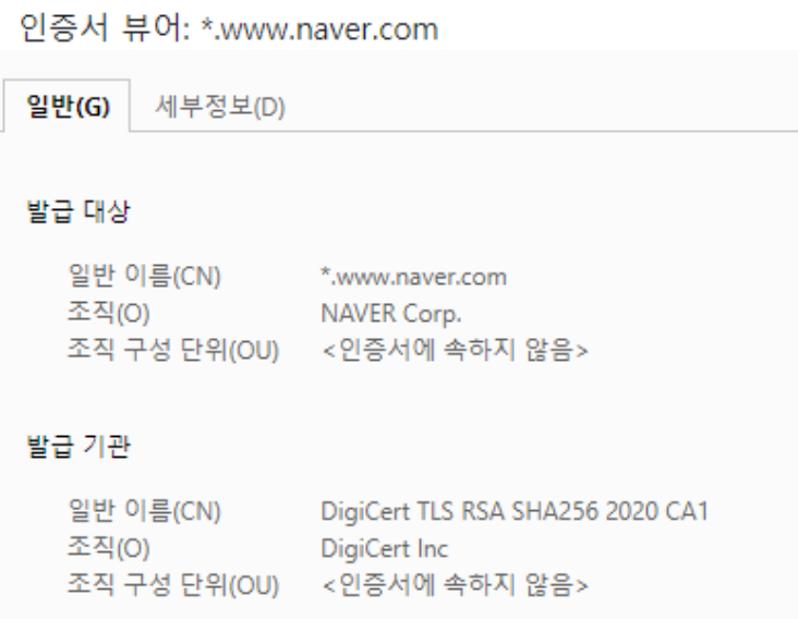이러한 인증서는 우리도 확인할 수 있다. 웹 서버에서는 인증서가 필수이다.