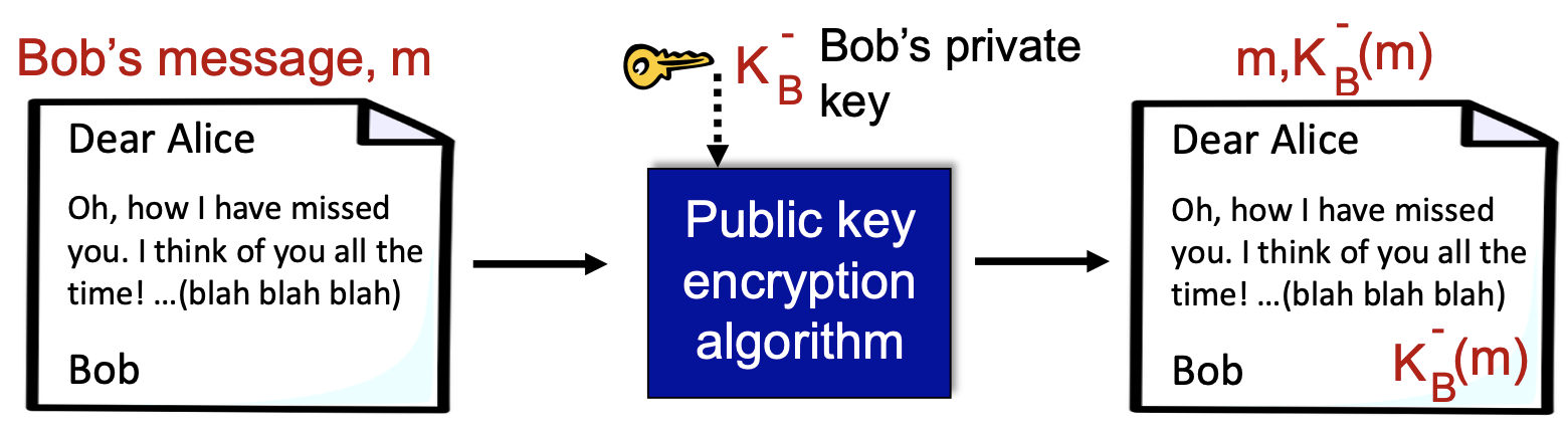 메세지 m에 대한 디지털 서명은 송신자의 개인키 암호화가 진행되는데, 송신자의 개인키로 암호화를 진행하는 것이 디지털 문서에 대한 서명이라고 할 수 있다.