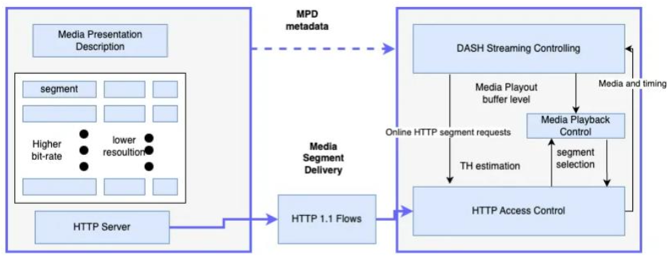 마찬가지로 HTTP 위에서 작동한다. HTTP에서는 HLS가 표준이며, MPEG-DASH는 HLS와 형태/구현물만 다르며 구조는 비슷하다.