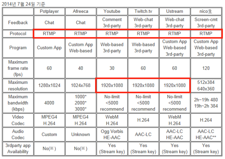 위 사진은 2014년도에 스트리밍 프로토콜로 어떤 것을 쓰는지를 보여주는 표다.