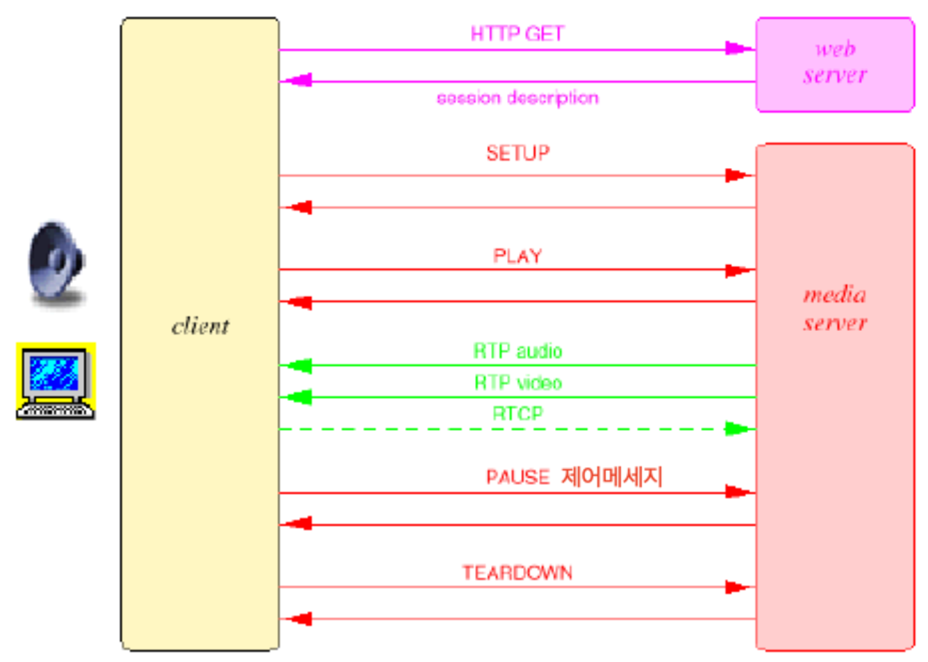 위 사진에서 빨간색 화살표가 RTSP가 보내는 제어 메세지이다.