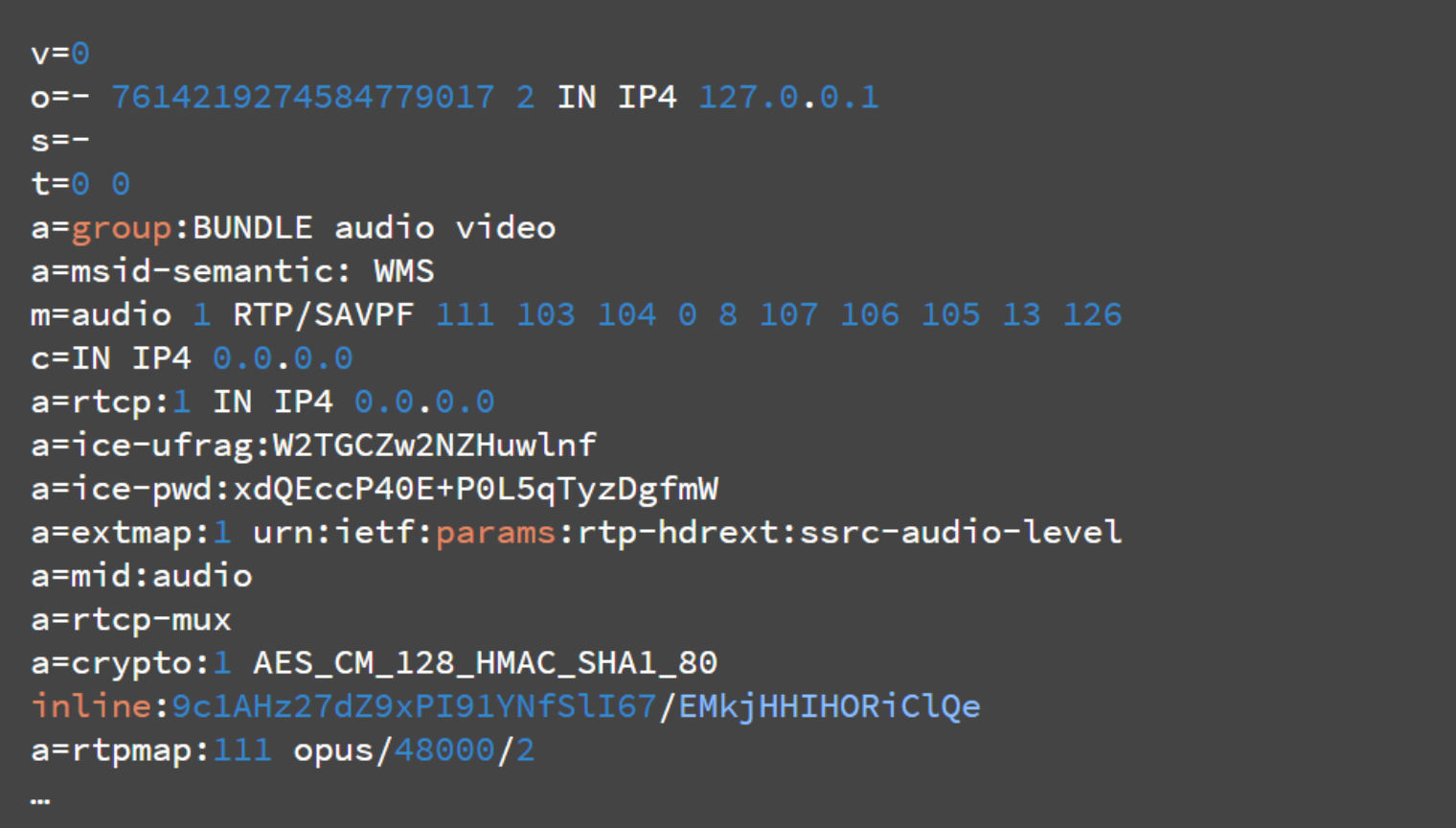 ip 주소, 오디오/비디오가 있고, ITP 정보나 ICE 정보 등 내가 사용하고 있는 비디오와 관련된 정보가 있다. 이러한 사항들을 상대방과 약속하고 통신을 시작한다.