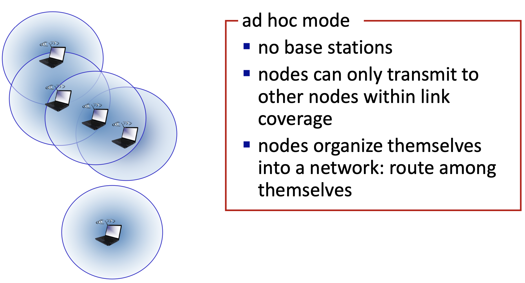 infrastructure mode가 아예 없는 곳은 ad hoc 모드를 사용한다.
