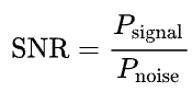 위 식을 통해 구할 수 있으며, SNR이 클 수록 신호가 높고, 잡음의 양이 작다는 것을 뜻한다.