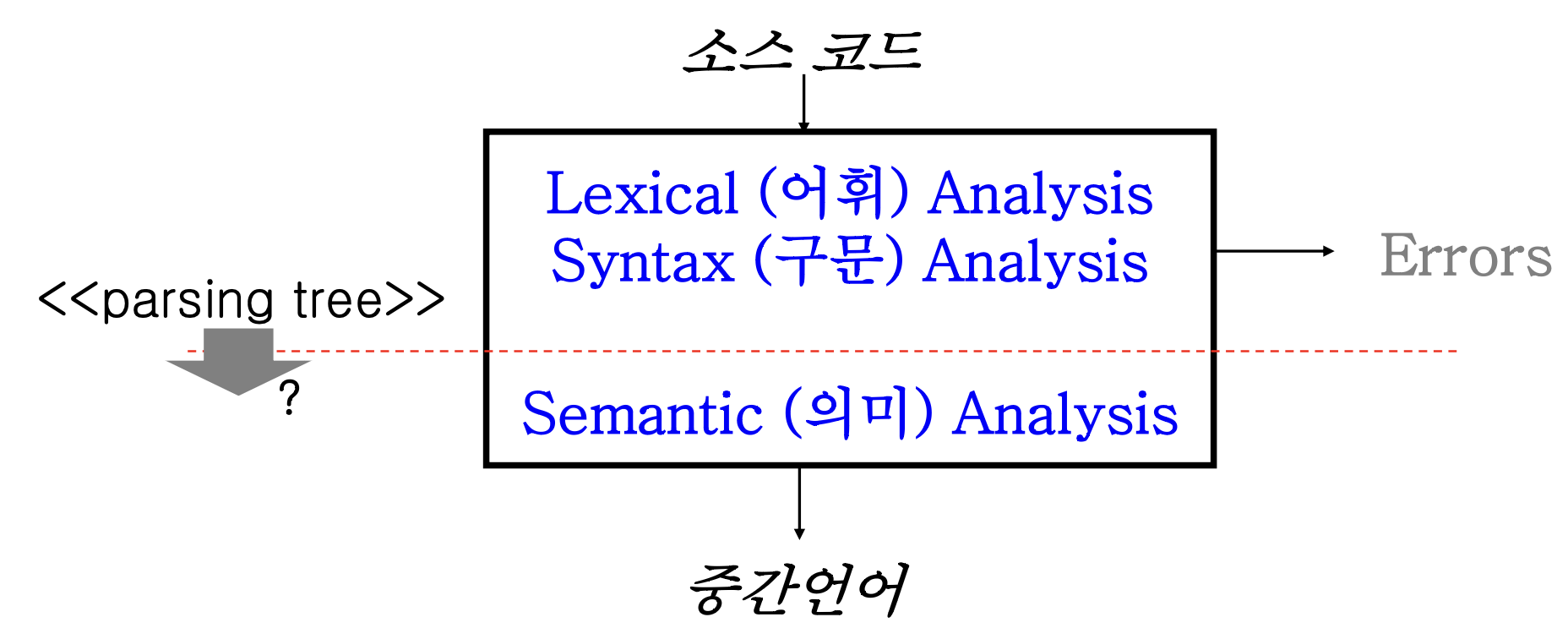 사실 파싱 트리를 통해 바로 의미 분석을 해도 되고, 여러 가지 처리 후 의미 분석 단계로 넘어갈 수 있다.