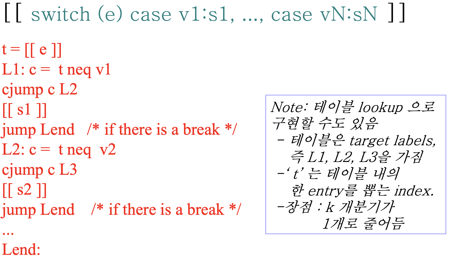 만약 t와 v1의 값이 같다면, [[s1]]을 수행한 후 해당 switch문을 탈출하도록 jump Lend를 넣어 주어야 한다.