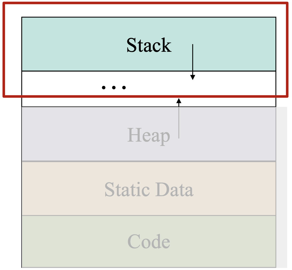 이때, 프로그램 별로 크기가 다르기 때문에, 어디서부터 어디까지가 스택의 top인지를 표기하기 위해 시작과 끝지점을 타나내는 두 개의 포인터를 사용한다.