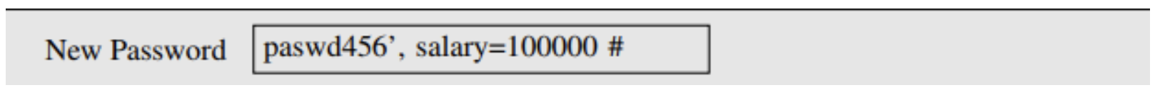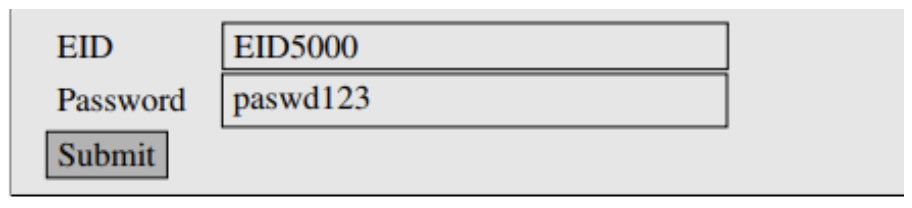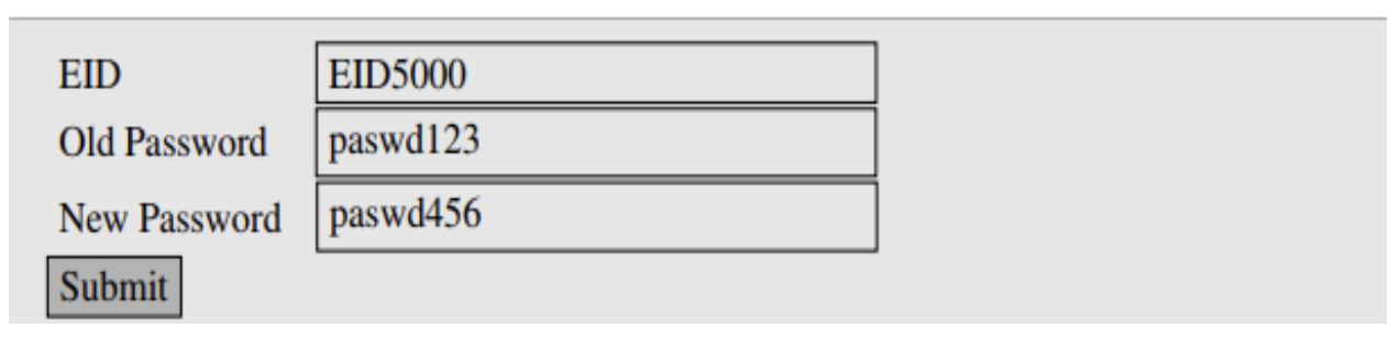 EID5000 값을 가지고 있는 유저는 자신의 salary 값을 임의로 변경하고자 한다. salary 값을 변경하기 위해 비밀번호 변경 창에 위 사진과 같이 입력하였다.