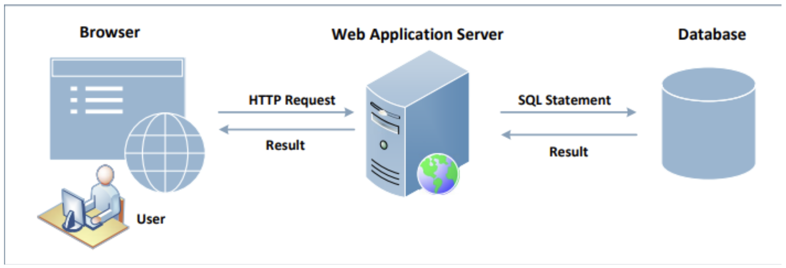 일반적으로 브라우저를 통해 웹 페이지를 접속한다. 이후 유저가 데이터를 입력한 후 서버에 request를 전송하면 서버는 입력된 정보가 유효한 것인지 판단하기 위해 쿼리문을 작성하여 DB로 쿼리를 전송한다. DB는 쿼리의 결과에 대해 참/거짓을 알려주거나 쿼리된 결과값을 전송한다. 이후 서버에서 다시 검증 결과를 유저에게 반환한다.
