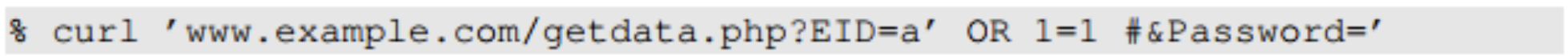 만약 아이디 부분에 유저가 입력으로 EID5002' #를 입력하면 위 사진과 같이 # 뒷 부분이 다 주석처리 되어 무시되기 때문에 비밀번호 검증 부분이 닫혀 아이디 값만으로 데이터베이스에 존재하는 값을 긁어올 수 있다.