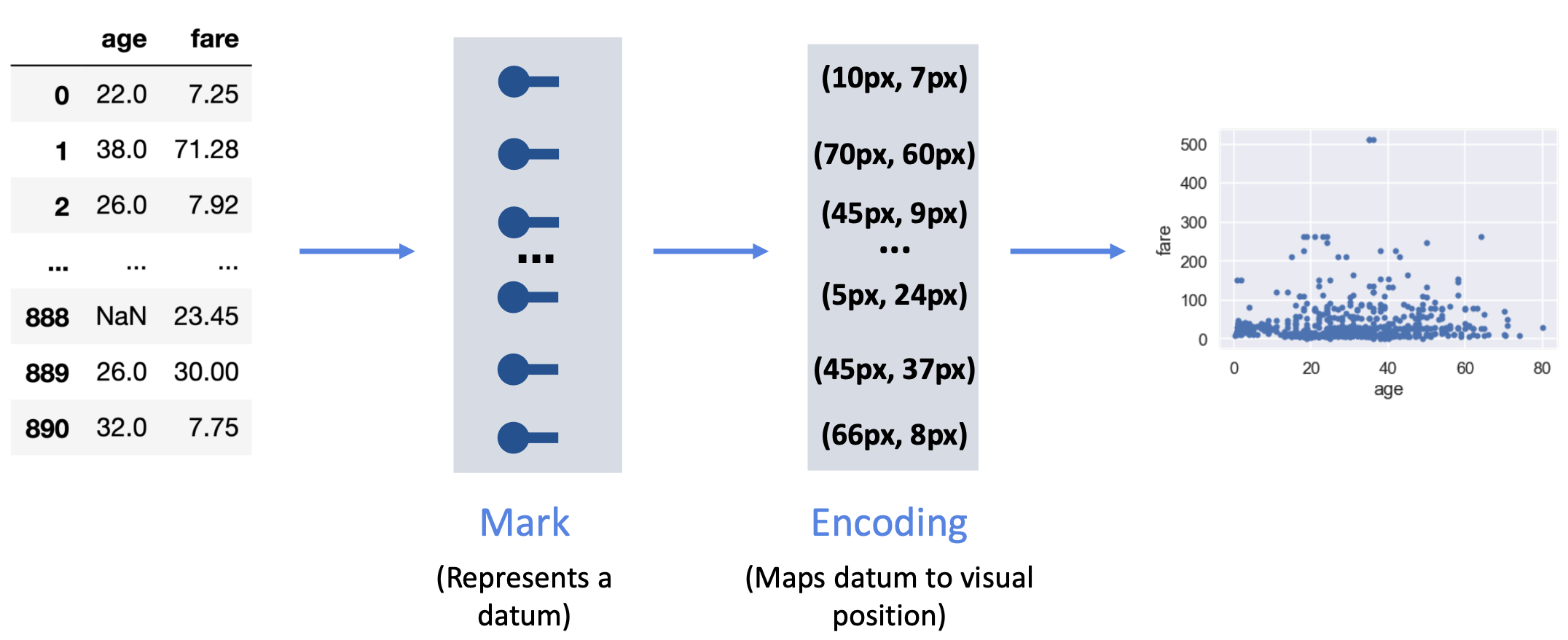 우리가 데이터를 보여줄 때 위 사진과 같은 scatter plot을 제작하면 여러 개의 데이터가 겹쳐 실제 분포의 의미가 잘 보이지 않을 수 있다. 위의 경우 dense한 부분과 sparse한 부분을 구분할 수는 있지만 그 정도가 얼마인지 가늠이 안 된다. 따라서 히스토그램이나 KDE 등을 사용하면서 분포의 차이를 확인할 수 있으며, 상황에 맞는 시각화 도구를 사용해야 한다.