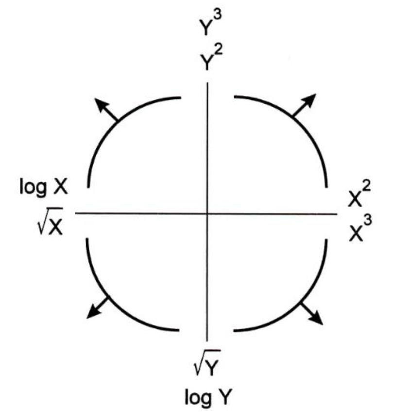 데이터를 선형적으로 보여주기 위해 기술적으로 Tukey-Mosteller Bulge Diagram라는 것이 존재한다. 이 diagram 기술을 사용하면 linearization을 편하게 할 수 있다.
