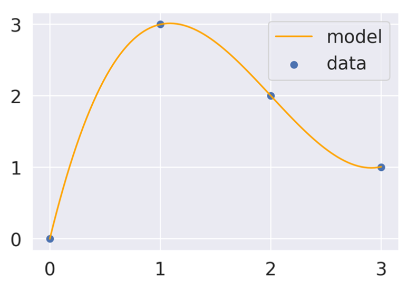 극단적인 예시를 하나 들어보자. 데이터가 4개가 존재했을 때, 우리는 각 점을 모두 지나기 위해