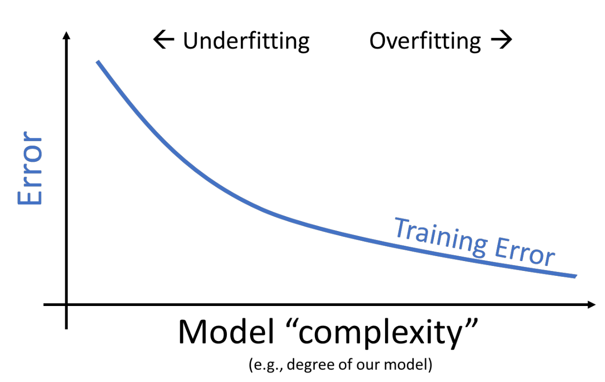 따라서 우리는 모델의 complex degree가 올라가면, training error은 줄어든다고 할 수 있다.